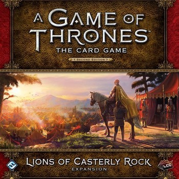 Lions of Casterly Rock, the second deluxe expansion for A Game of Thrones: The Card Game, invites you to take your place among the storied names of House Lannister. Within this expansion, the Lannisters explore new themes, launching an ambush with their Clansman allies, redoubling their focus on the intrigue challenge, and sending out marauders to pillage the lands of Westeros. You’ll also find new versions of the most iconic Lannister characters, including Tywin Lannister, Cersei Lannister, Ser Jaime Lannister, and Tyrion Lannister. Of course, while House Lannister holds the spotlight here, you’ll also gain two new non-loyal cards for each other faction with new characters entering the game for the first time, including Edric Storm, Victarion Greyjoy, Trystane Martell, and Jeyne Westerling. Finally, you’ll have the chance to reshape your plot decks with seven new plots (six neutral and one loyal to House Lannister).